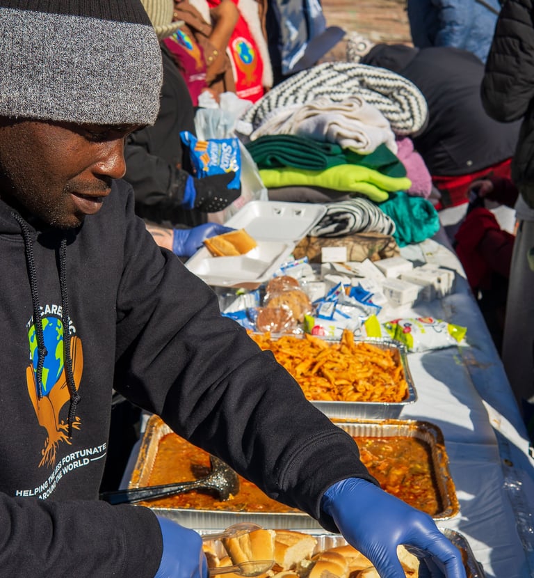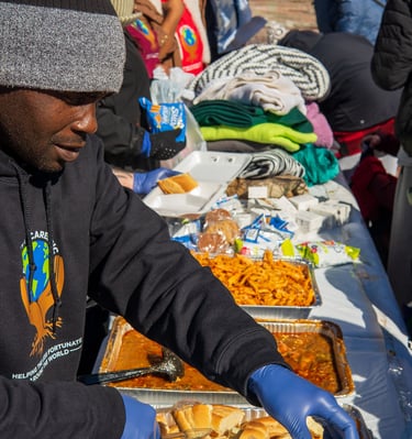 We cook and serve warm meals to uplift the community's food insecurity. We distribute toiletries, clothing, and sleeping bags to those in need. We help families and individuals with groceries or gift cards to help combat food shortage.